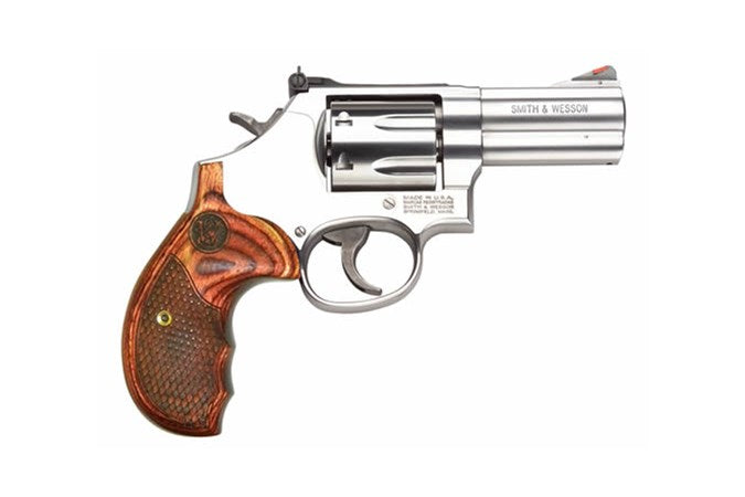 This is a brand new S&W 686 Plus Deluxe .357 Magnum revolver with a 3 inch barrel, 7 shot capacity, wood grips and a hard case.